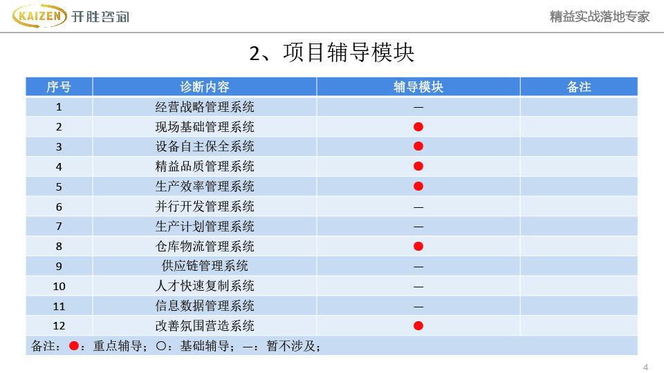 业务咨询概况 精益生产 精益TPM 精益品质 精益流程 方针目标 精益成本 6S管理 智能管理系统