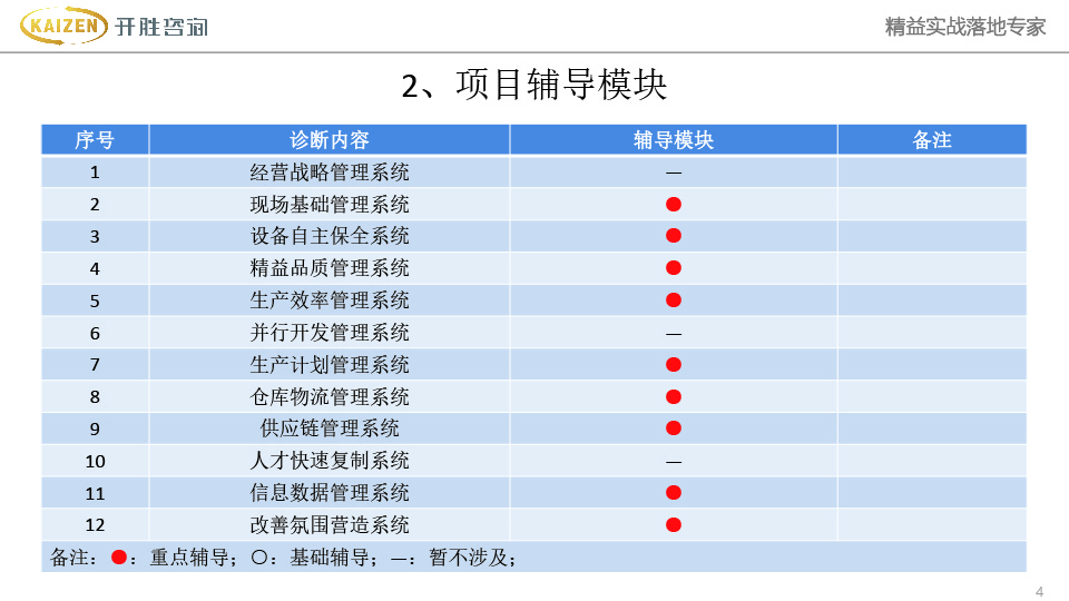 业务咨询概况 精益生产 精益TPM 精益品质 精益流程 方针目标 精益成本 6S管理 智能管理系统